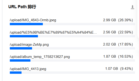 这是典型的流量异常,不符合我这个“无人问津”的博客定位。几个体积比较大的静态图片冲上流量榜首,十分恐怖。